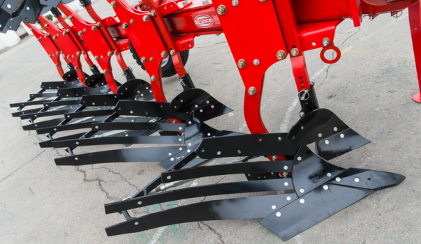 大犁铧装置有犁尖、犁铲、犁颈板、犁臂、犁刷、撑条、调节丝杆组合、犁托、犁侧板组成。犁铧经过特殊热处理,特别牢固坚硬,犁铧的入土角度可调节,翻垡,碎土,覆盖性能好,阻力小。犁壁经过硬处理,独特高速曲面设计,高度抗磨损。